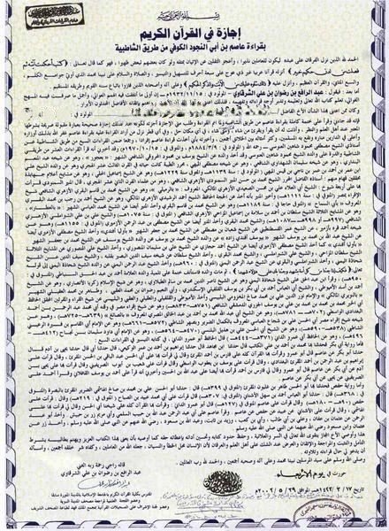 • Ijazah in Qira’at (variant readings): For advanced students who master the different canonical recitations (Qira’at).