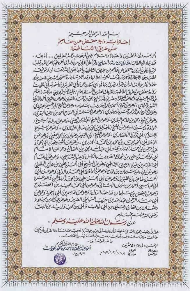 Ijazah in Qur’anic : It is a Sanad (chain of transmission) linking the student back to the Prophet Muhammad ﷺ through a continuous chain of teachers.